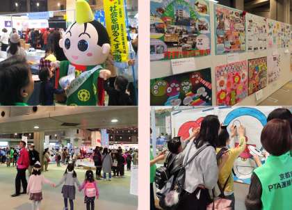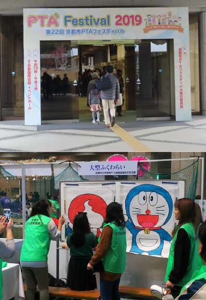 昨日(12月14日)、左京区宝ヶ池にあります「国際会館のイベントフォール」にて、第22回京都市PTAフェスティバルが行われました。PTAフェスティバルでは、模擬店やステージ発表、ブースコーナー、PTA壁しんぶんの展示などがありました。本校からは、ブースコーナーでのボランティア(スタッフはジャンパーを着ておられます)として、ゲームコーナーのお手伝いをして頂きました。また、PTA壁しんぶん(PTA学級委員担当者で製作)は、フリースタイル部門での参加となりました。