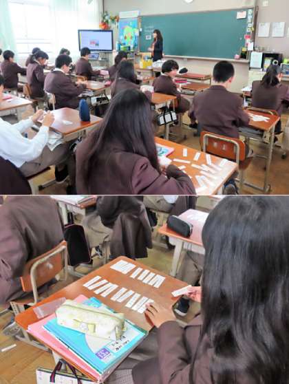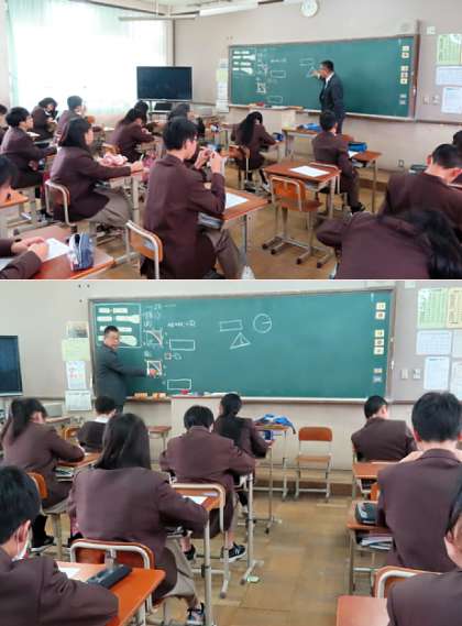 3限の授業の様子です。上から、2組 数学、3組 社会、4組 英語 です。