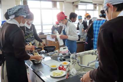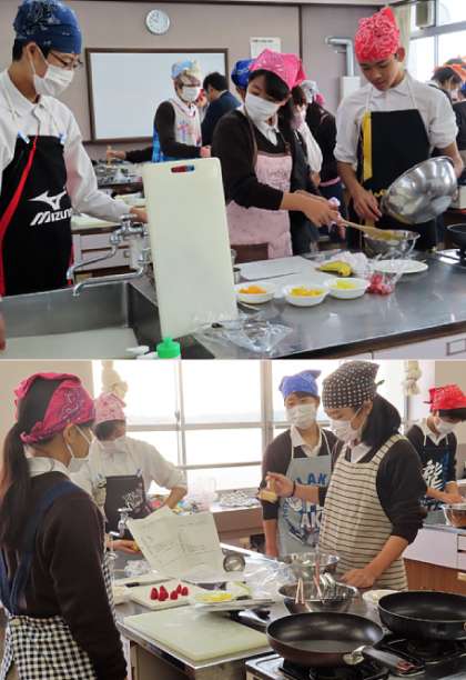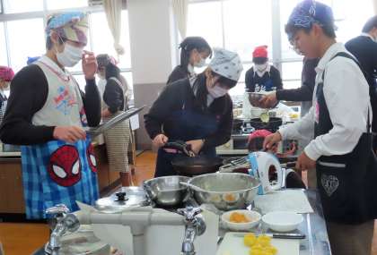 2限の3年2組の調理実習の様子です。パンケーキを作っていました。