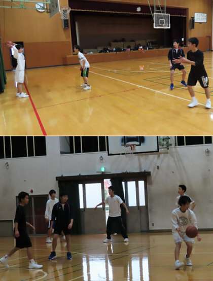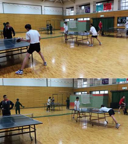 部活動の様子です。上から、バスケットボール、バレーボール、卓球 です。