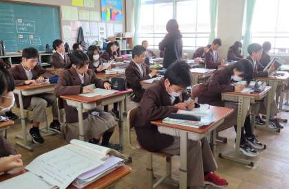 2限の授業の様子です。上から、2組 国語、3組 美術、4組 英語 です。