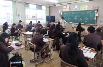 2限の授業の様子です。上から、2組 理科、3組 家庭、4組 英語 です。