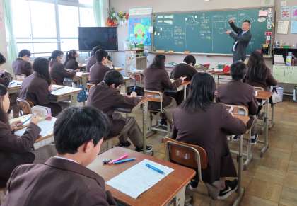 1限の授業の様子です。上から、2組 社会、3組 英語、4組 数学 です。