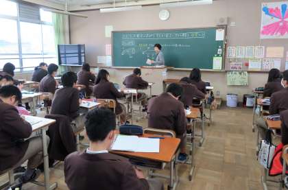1限の授業の様子です。上から、2組 社会、3組 理科、4組 数学 です。