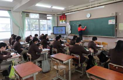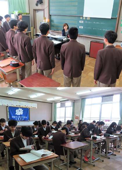 2限の授業の様子です。上から、2組 社会、3組 音楽、4組 理科 です。