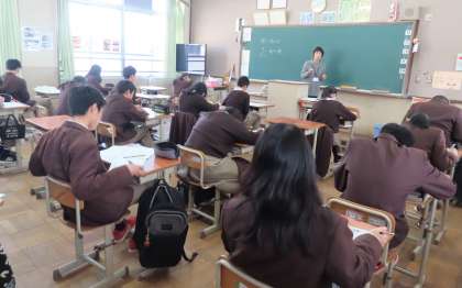 2限の授業の様子です。上から、2組 理科、3組 家庭、4組 英語 です。