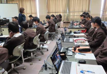 2限の授業の様子です。上から、2組 英語、3組 音楽、4組 数学 です。