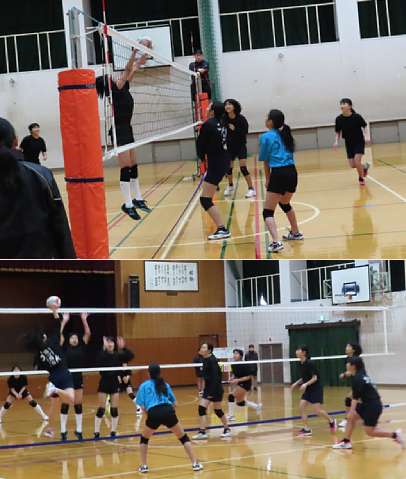 バレーボール部の様子です。練習試合をしていました。