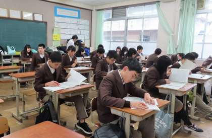 2限の授業の様子です。上から、2組 英語、3組 社会、4組 国語 です。
