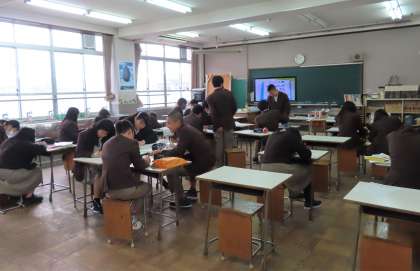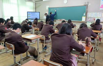 2限の授業の様子です。上から、2組 美術、3組 英語、4組 数学 です。