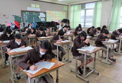 5限の学習確認プログラム(国語)の様子です。4限に社会、6限に数学のテストを実施します。