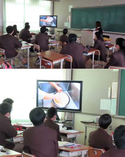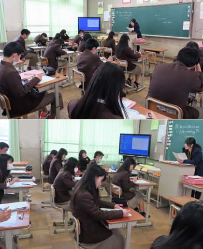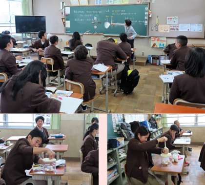 2限の授業の様子です。上から、2組 理科、3組 家庭、4組 英語 です。