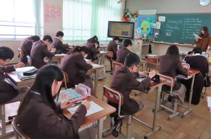 2限の授業の様子です。上から、2組 国語、3組 美術、4組 英語 です。