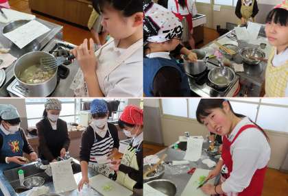 本日の4限、2年2組の家庭科の時間に調理実習が行われ、「豚汁」を作りました。美味しくできたでしょうか。