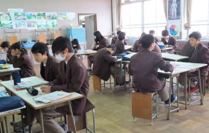 2限の授業の様子です。上から、2組 国語、3組 美術、4組 英語 です。
