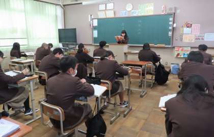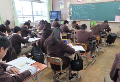 1限の授業の様子です。上から、2組 国語、3組 理科、4組 数学 です。