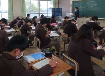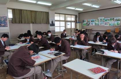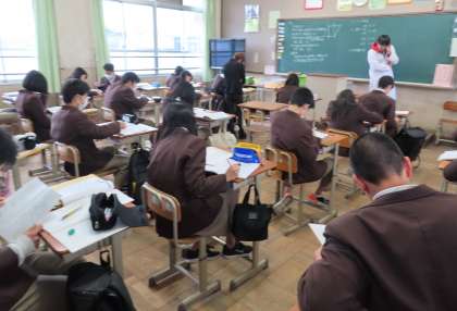 2限の授業の様子です。上から、2組 美術、3組 英語、4組 数学 です。