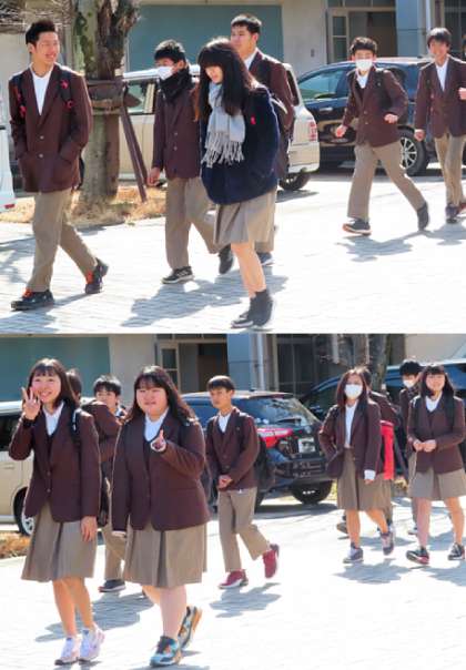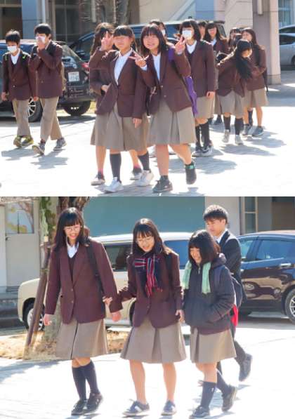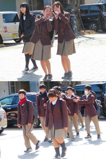 下校の様子です。1,2年生はテストが終了し、下校しました。また、部活動がある場合は、3年生が6限まで授業ですので15:15再登校になります。