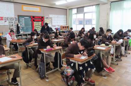 2限の授業の様子です。上から、2組 英語、3組 数学、4組 理科 です。