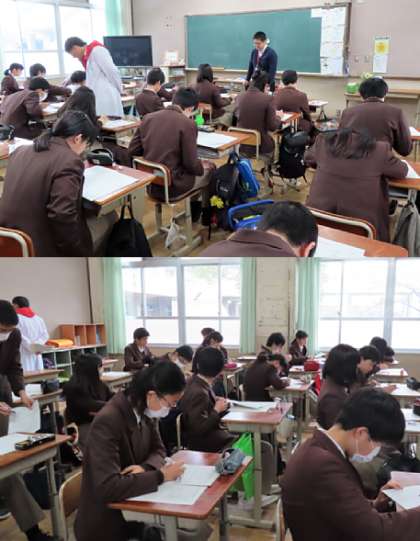 2限の授業の様子です。上から、2組 英語、3組 数学、4組 理科 です。明日から休校となりますので、3年生は3,4限が学活、5限が中期選抜学力検査の事前指導となりますので、最後の授業となりました。