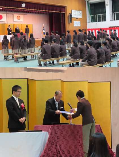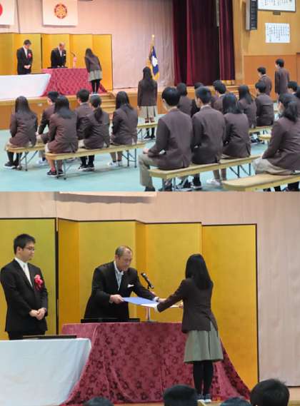 卒業証書授与の様子です。今回は、クラス代表が卒業証書を受け取りました。