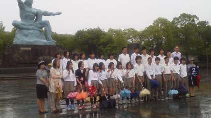 雨のため、記念写真だけで、平和記念公園を後にしました。