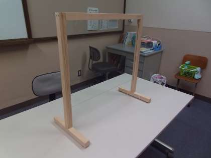 通級教室で、生徒と個別面談をする際に必要な「飛沫感染防止パーティション」が完成しました。