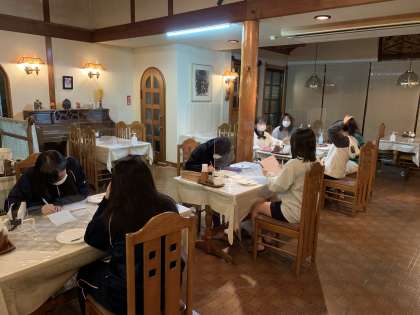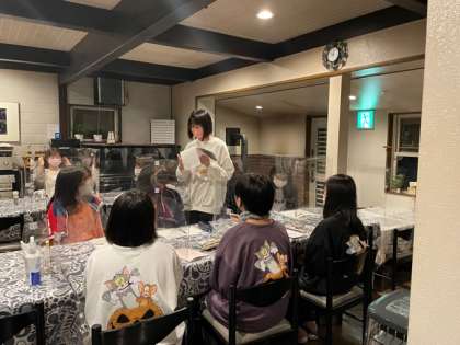 クラスごと男女別で6つのペンションに分宿しています。夜ご飯も美味しく、自由時間を楽しく過ごしました。1日の終わりには、どのペンションでも1日の振り返りミーティングを行い,今日出来たこと,明日頑張ることを確認しました。