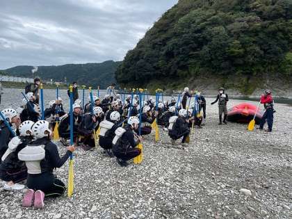インストラクターさんに、道具の使い方や、ボートの漕ぎ方を教えていただき、笑顔で富士川を下って行きました。