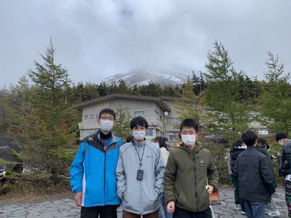 霧のため山頂は見えませんが,それでも笑顔でお土産を買ったり,おやつを食べたりして楽しんでます。