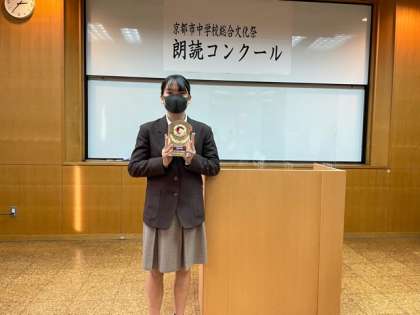 11月6日(土)に第37回京都市中学校総合文化祭,朗読コンクールが開催されました。本校の3年の生徒が「最優秀賞」を受賞しました。