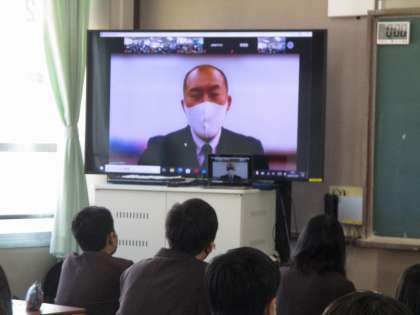 今日は2学期の最終登校日となり,ZOOMによる終業式を行いました。最初に伝達表彰を行い,その後校長先生,生徒会からのお話と続きました。