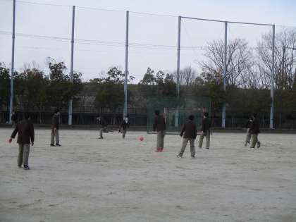 昼休みは,グラウンドで楽しく球技をしている生徒もいます。