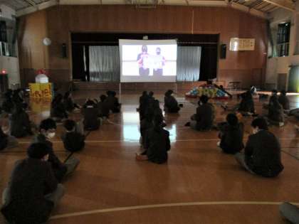 3年生に感謝の気持ちを伝え,また門出を祝うために生徒会主催で行いました。コロナ渦にあり,全校生徒が一堂に集うことはしませんでしたが,体育館に集まった3年生と各教室にいる1,2年生がオンラインでつながり,趣向を凝らした楽しい会になりました。