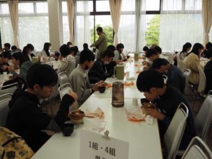 諏訪市内のお店で昼食を済ませました。この後,犀川ラフティングに向かいます。