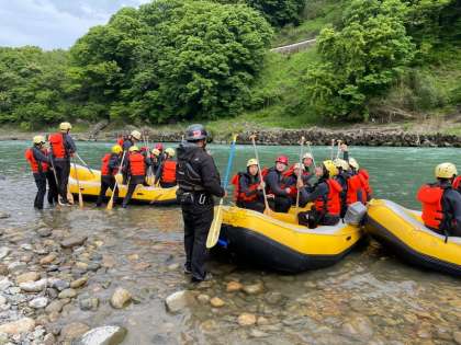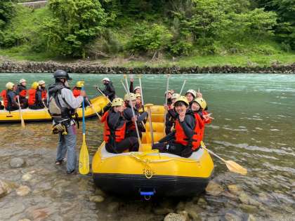 川の駅さざなみ(大町市)に到着し,犀川ラフティング活動に取り組みました。みんな元気いっぱいです。