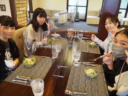 ただいま白馬スキージャンプ台に移動しています。写真撮影の後,自然体験学習に取り組みます。昨日の夕食とお土産購入の様子をお伝えします。