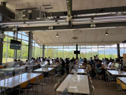 Hakuba47での昼食の様子です。晴天に恵まれて楽しい時間を過ごしています。