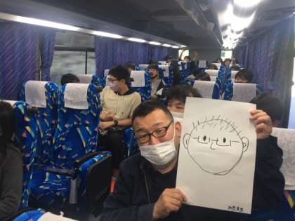 トイレ休憩の後,10:30頃に駒ヶ岳SAを出発しました。天気は良く晴れています。バス内の様子です。