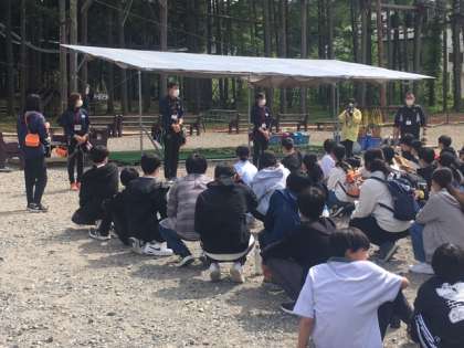 14:00頃に白馬EXアドベンチャーに到着してインストラクターの方と自然体験学習に取り組んでいます。