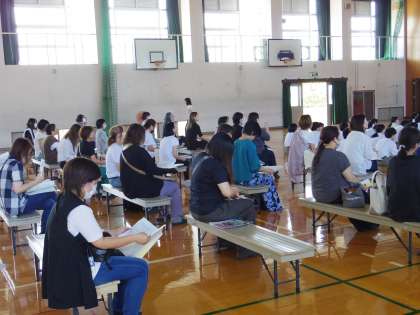 26日(火)に進路保護者説明会を開催しました。乙訓高校・京都工学院高校・京都明徳高校をお招きし、学科内容等の説明をしていただいています。高校説明については、生徒・保護者と合同で聴き、その後、保護者向けに本校進路主事より京都公立高校入試概要や進路日程等の説明を行いました。