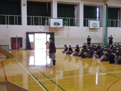 新しく着任された5名の教職員をお迎えして着任式・始業式を行いました。始業式では、生徒の皆さんへ各学年の担当教職員の発表がありました。