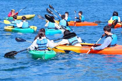 自然体験のカヤックを行いました!最初は「怖い!」と言う言葉が出ていましたが、みんな慣れて上手に操作していました!