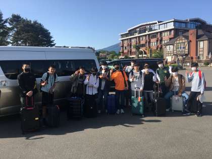 バス乗り場に到着。今日の班別研修に分かれて出発します。