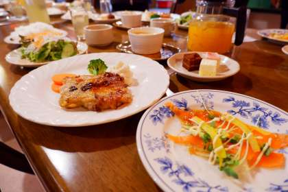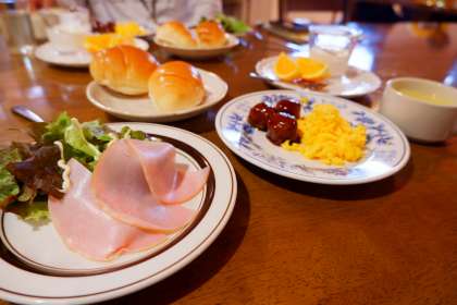 おはようございます!ペンションでの晩御飯と朝ごはんです!どのペンションも同じメニューです!子どもたちも沢山食べたそうです!今日も頑張りましょう!
