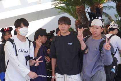 アトラクションに乗るために、みんなで並んでます。