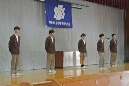 17日(木)前期代表専門委員の認証式を行いました。3年生のクラスが代表して認証書を受け取りました。