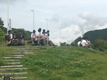 展望台で昼食中です。