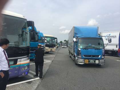 石川PAでトイレ休憩。人や車が増えてきました。JRの運航状況が気になりますが、今のところ、班別研修は予定通り行えそうです。
