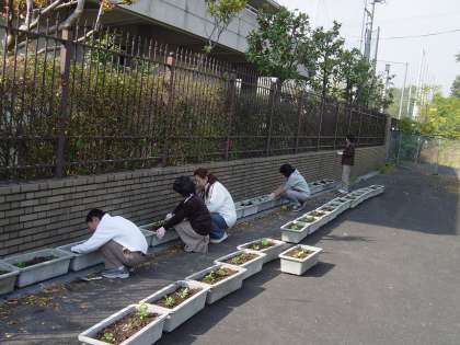 1組の生徒が汗を拭き拭き、160株の苗を植え付けてくれました。
